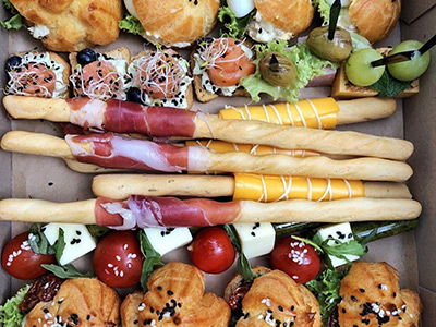 Це набір вишуканих фінгер-фудів в коробці. Чудово підходить для Дня народження в офісі чи для закритої вечірки, Happy Friday. Взяти з собою на пікнік, запросити друзів на посиденьки до дому.